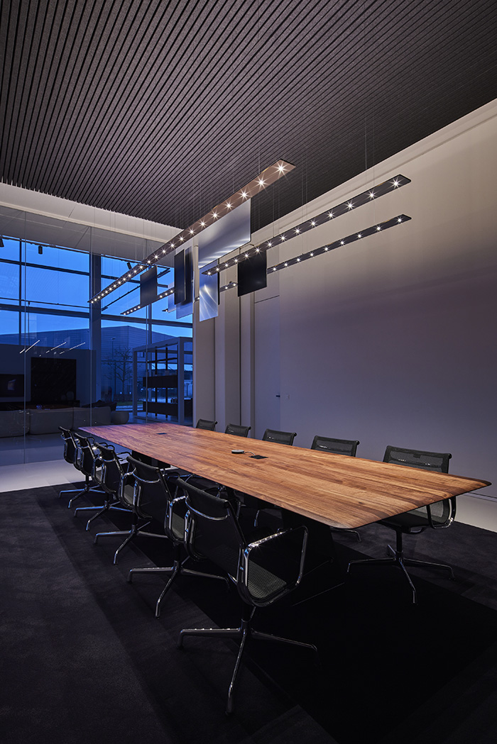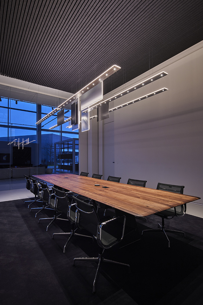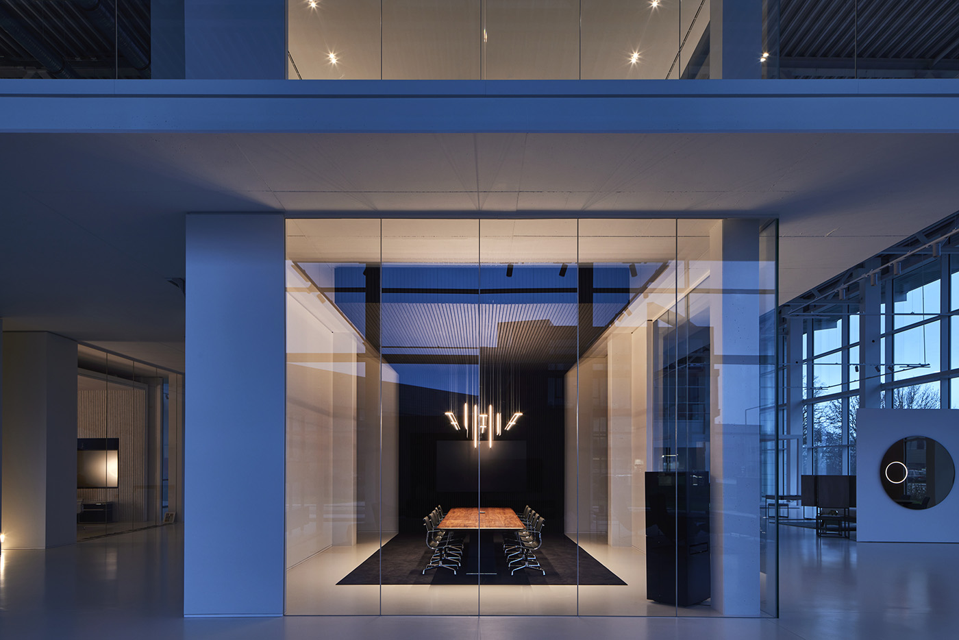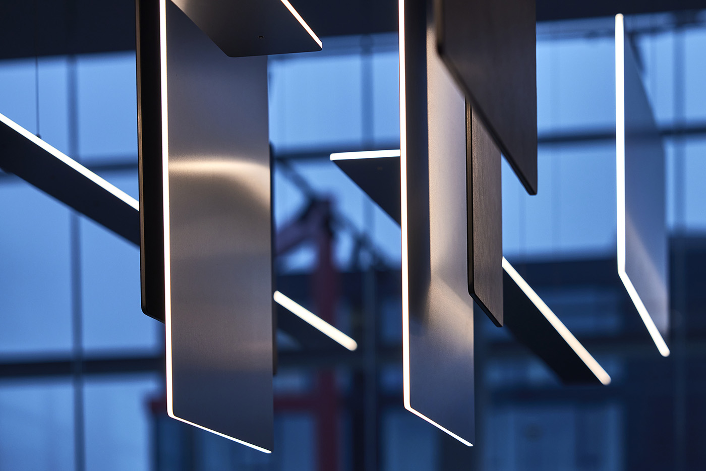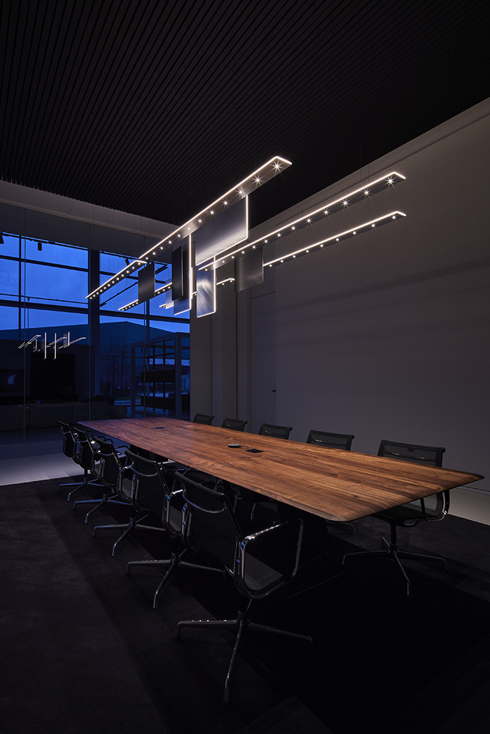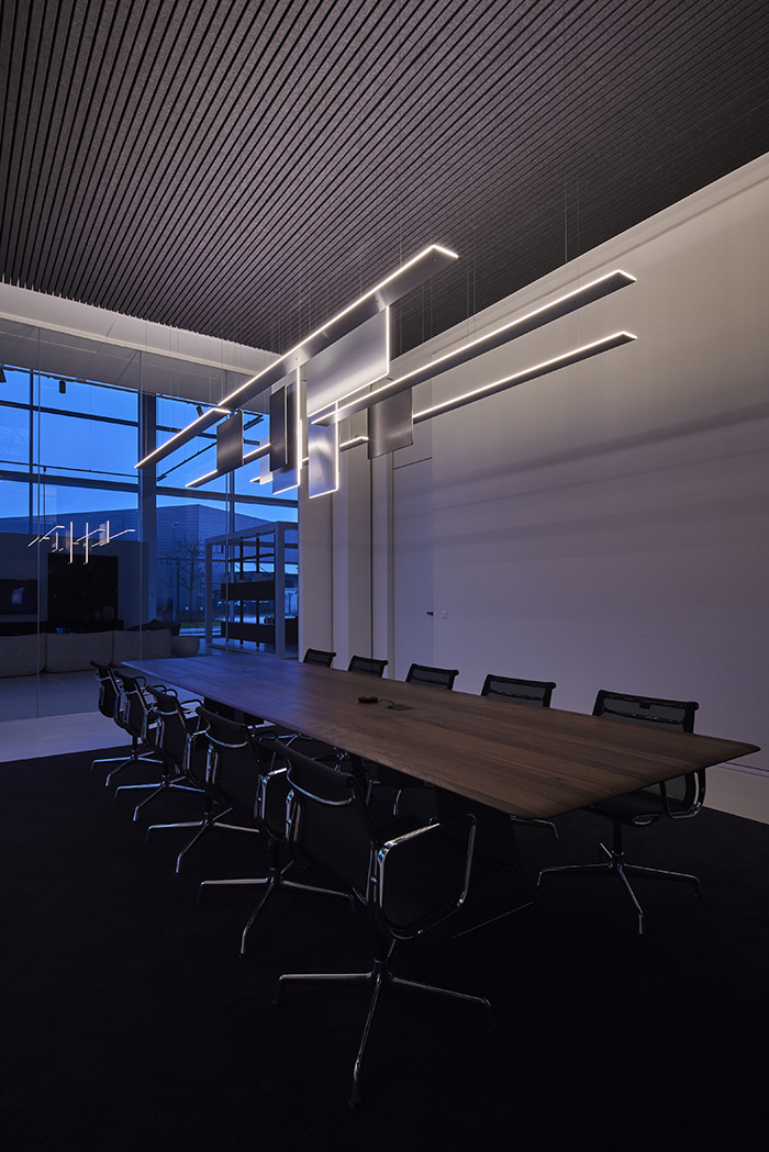 In Zusammenarbeit mit dem Münchener Leuchtenhersteller ambright wurde diese Licht-Installation in unserem puristischen Konferenzraum entwickelt.